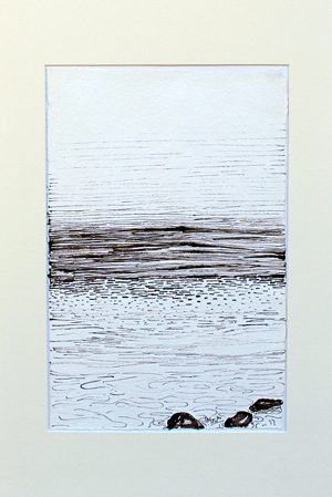 oben:Sepia auf Papier, Pinselzeichnungen, unten Druckcollagen-Ölmalerei